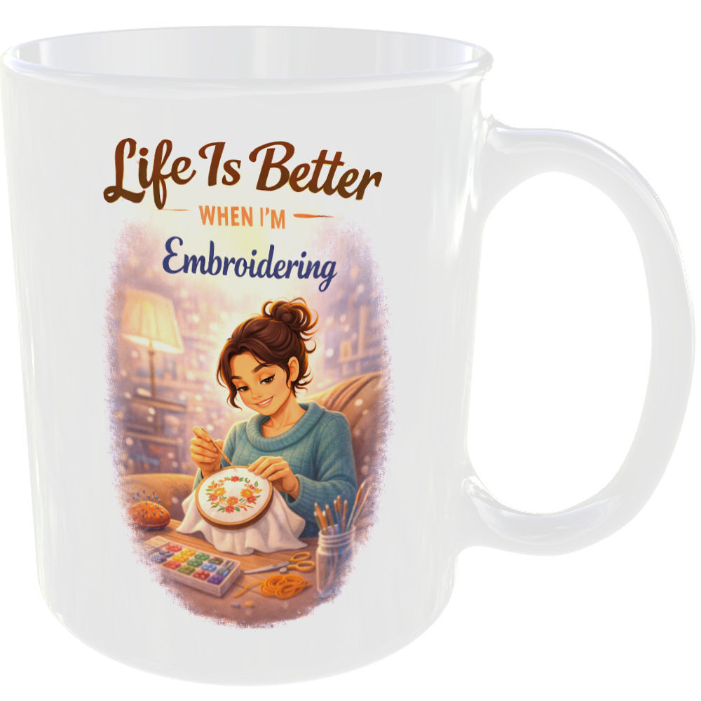 Embroidering, Lovely mug gift for embroidery and stitching fans.
