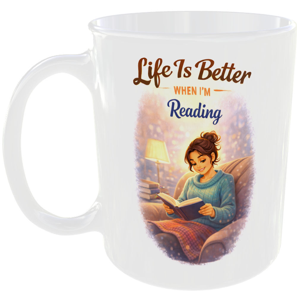 Reading, Lovely mug gift for book lovers and readers.