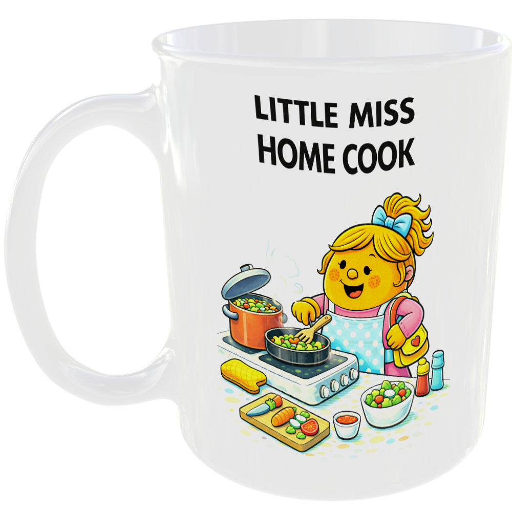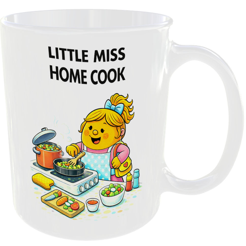 Playful Little Miss design featuring ‘Little Miss Home Cook’, with clean flat cartoon artwork and bold rounded text.
