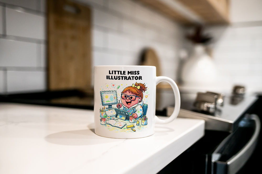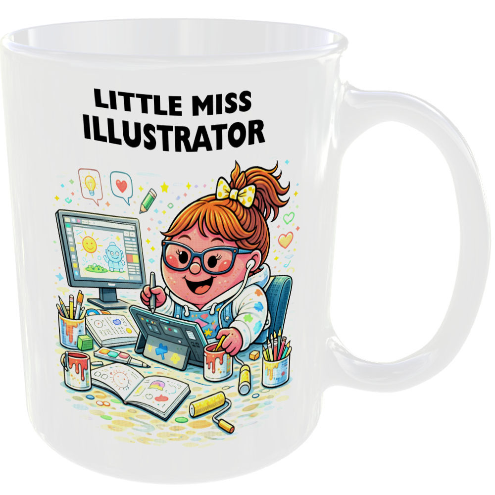 Playful Little Miss design featuring ‘Little Miss Illustrator’, with clean flat cartoon artwork and bold rounded text.