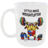 Playful Little Miss design featuring ‘Little Miss Weightlifter’, with clean flat cartoon artwork and bold rounded text.