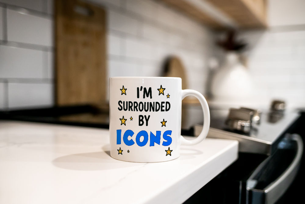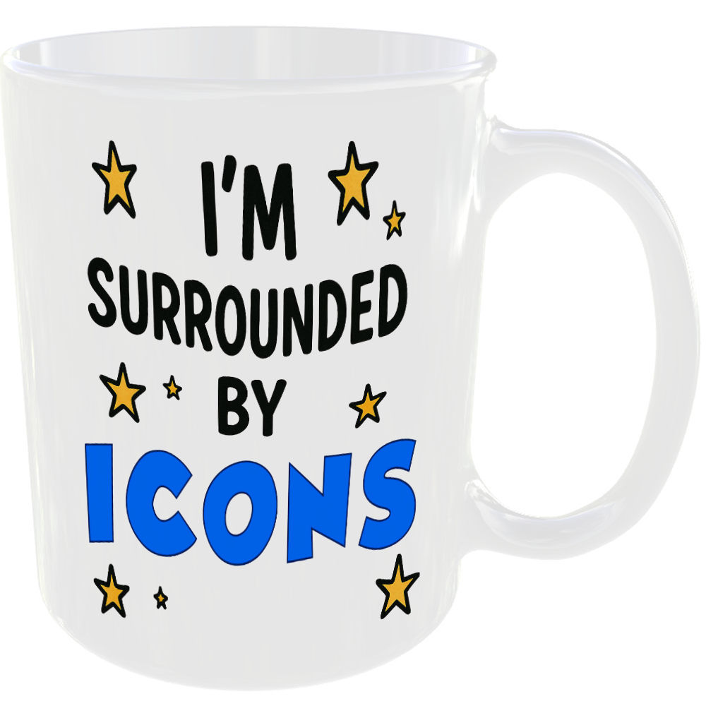 SURROUNDED BY ICONS MUG FUNNY GIFT FOR OFFICE WORK HOME FAMILY FRIENDS MATES CUP