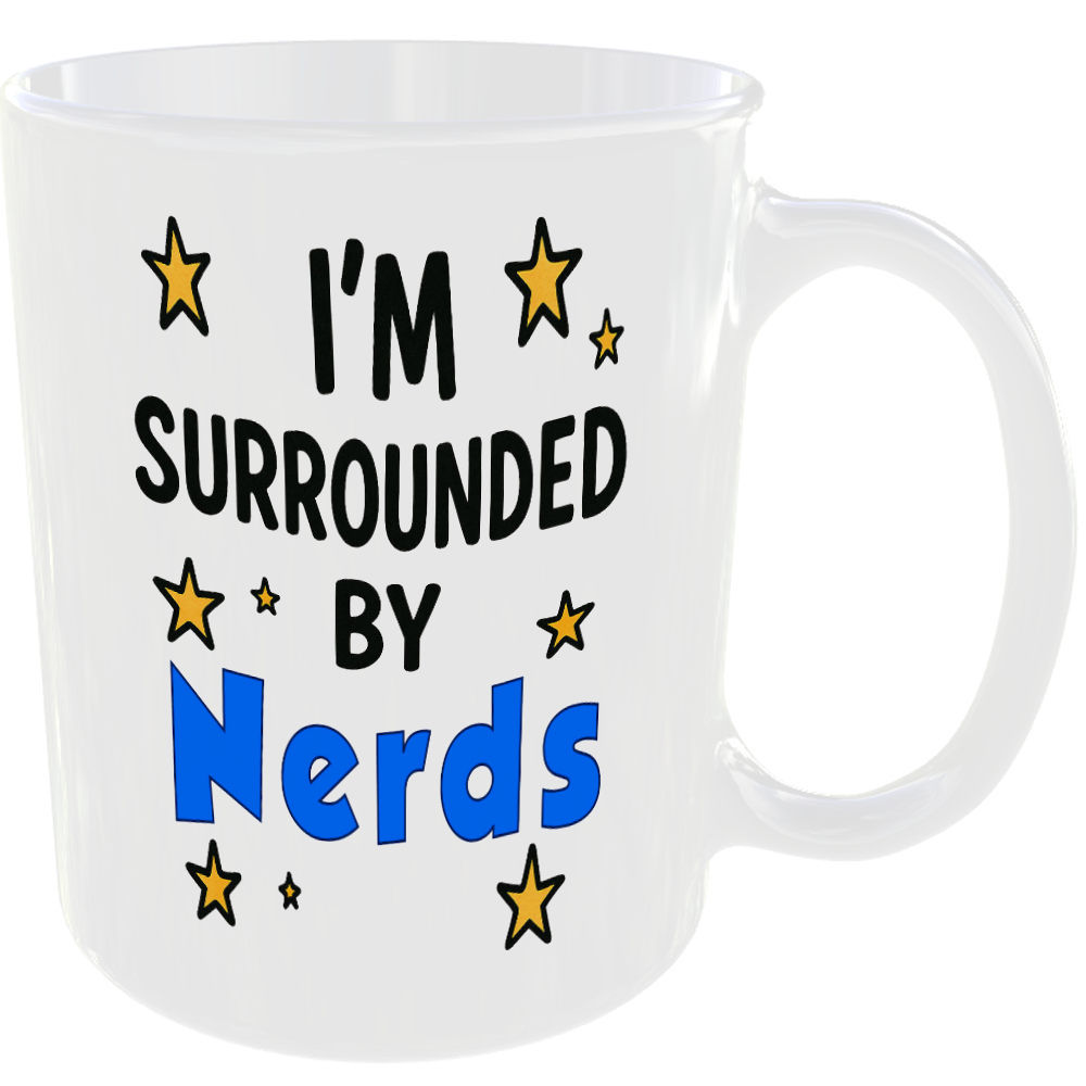SURROUNDED BY NERDS MUG FUNNY INSULT GIFT OFFICE WORK HOME COFFEE TEA CLEVER CUP