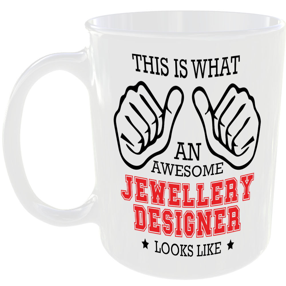 THIS IS WHAT AN AWESOME JEWELLERY DESIGNER LOOKS LIKE MUG IDEAL GIFT CUP FOR WORK JOB CAREER