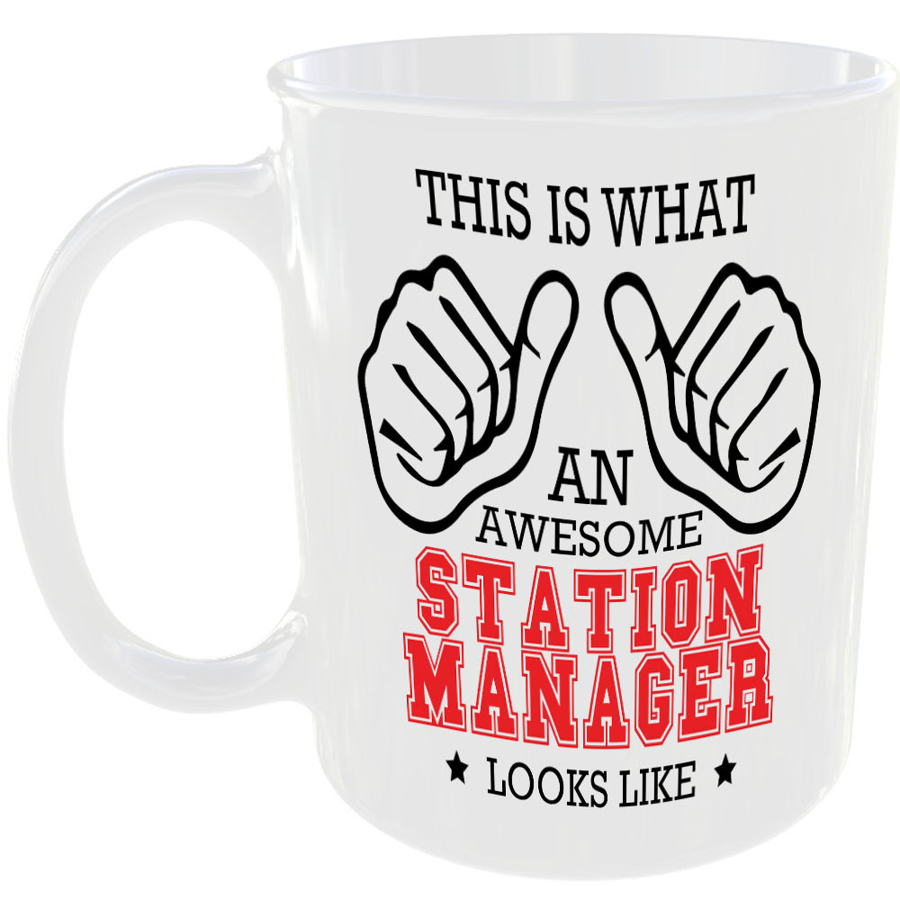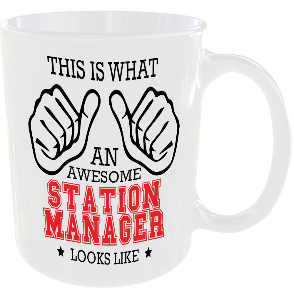 WHAT A AWESOME STATION MANAGER LOOKS LIKE MUG IDEAL GIFT CUP FOR WORK JOB CAREER
